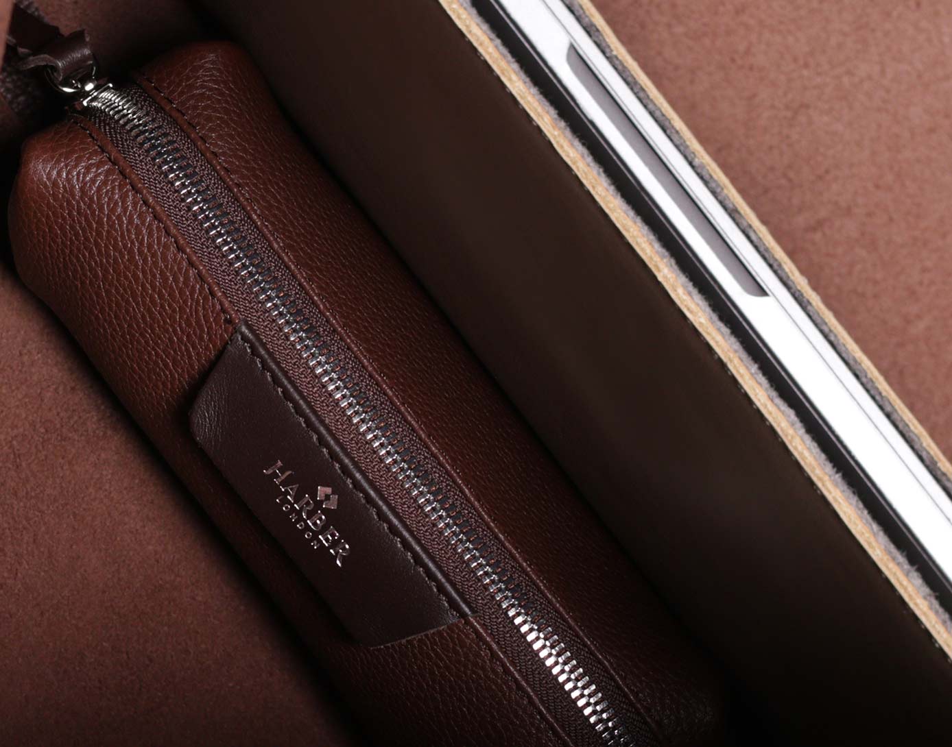 £79.00 Compact, high capacity pencil case, soft leather, raw interior. Fits pens, AirPods, AirTags, cords, toiletries and more.