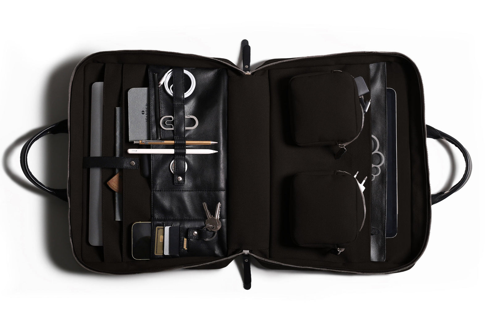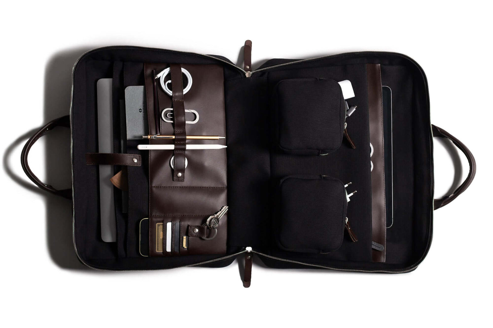 I recently purchased this laptop brief for my 16” MacBook Pro and have found it to be quite versatile. The brief boasts numerous pockets and sleeves, providing ample space for various accessories and essentials. A standout feature is the two magnetic pouches centrally located, adding an innovative touch to the overall design.