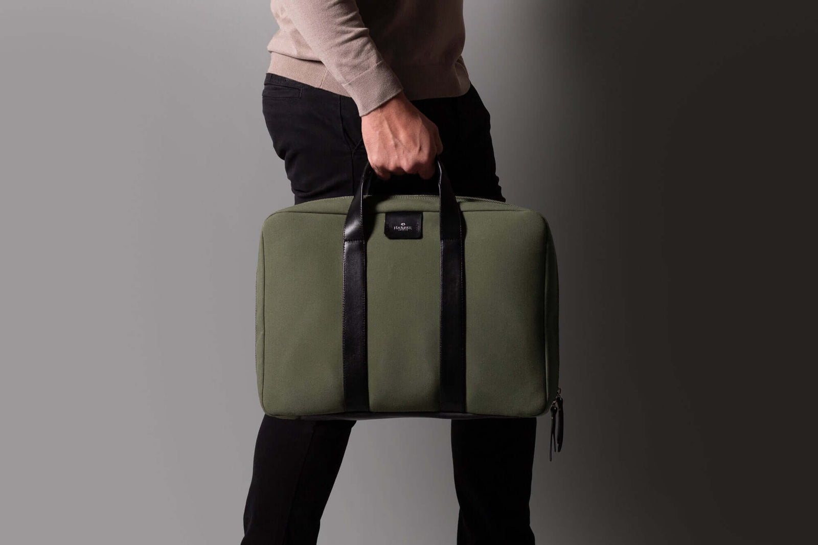 Rugged Laptop Briefcase Olive Fabric / Black Leather