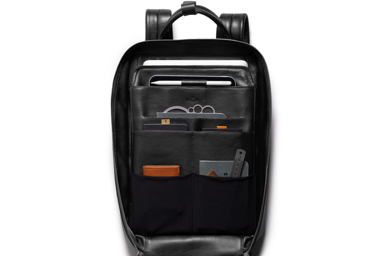 • Ingebouwd tabletvak binnenin, geschikt voor iPad Pro 12.9" met toetsenbord en kleinere tablets.